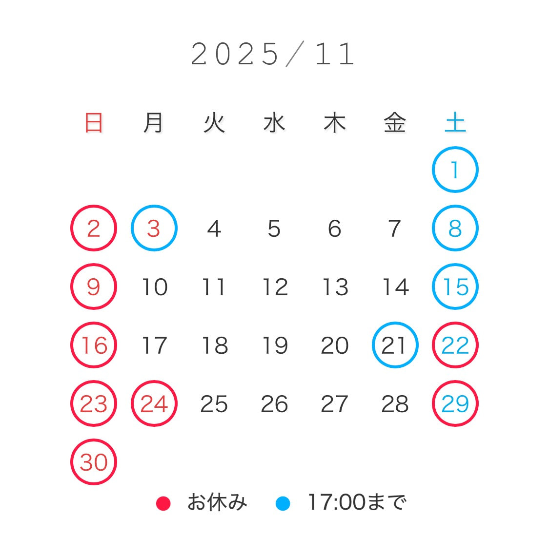 今月のカレンダー