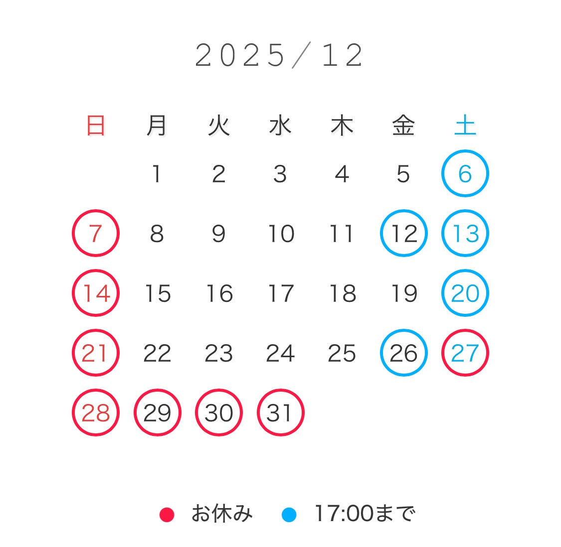 今月のカレンダー